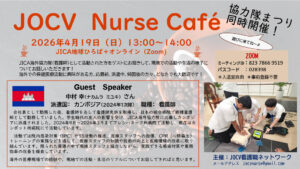 JOCV看護職ネットワークは帰国後の看護師、保健師、助産師からなる職能グループです。1996年から発足し、仕事をしながら無理なく出来る経験を生かした活動をしています。 その中でJICA協力隊の保健分野募集の広報活動の一環として、グローバルフェスタや協力隊祭りに参加しています。