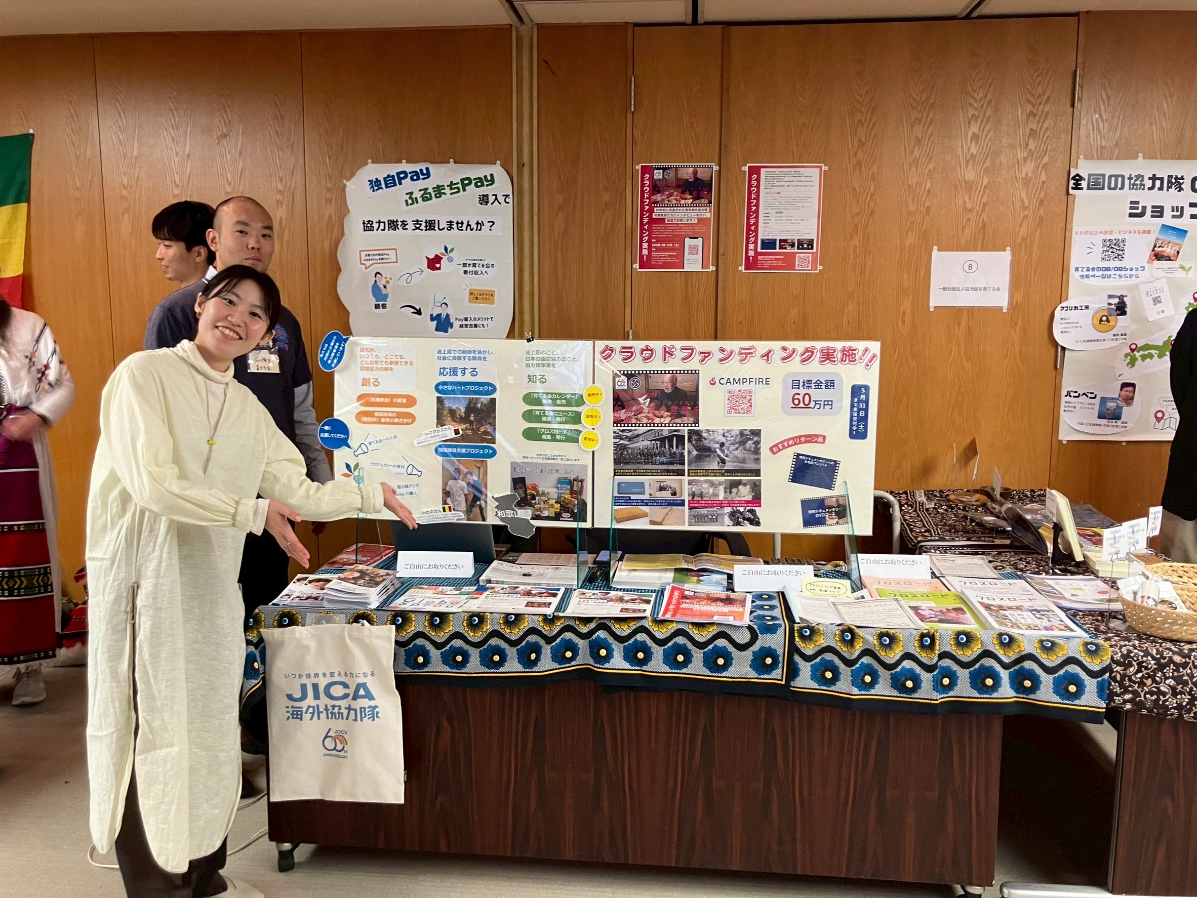 弊会ブースでは、ラオス隊員の活動や、コミュニティ開発隊員が現地活動によって任地で作られた織物などを紹介し、販売します。