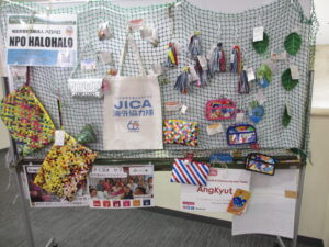 弊会ブースでは、ラオス隊員の活動や、コミュニティ開発隊員が現地活動によって任地で作られた織物などを紹介し、販売します。