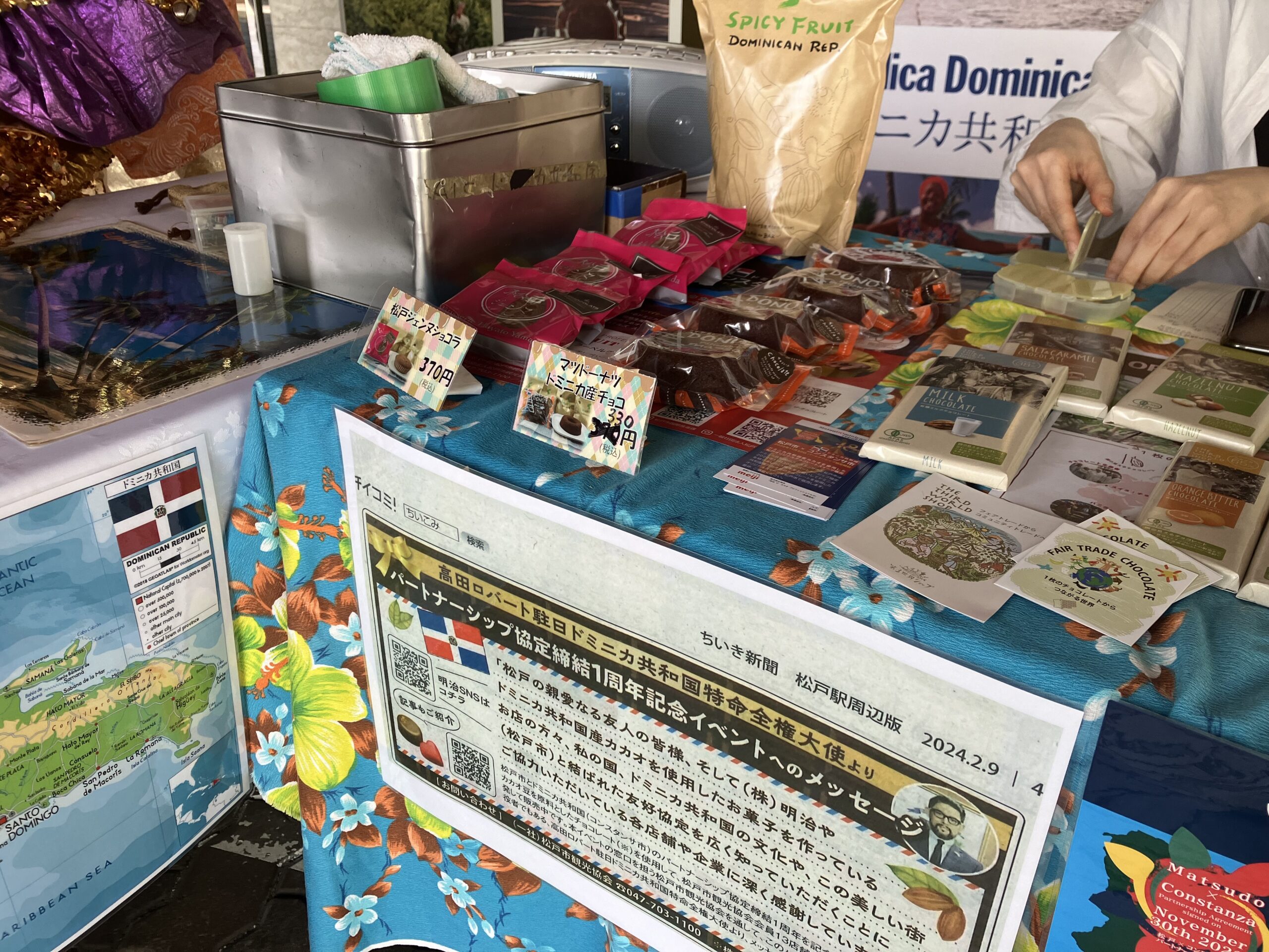 同国大使館が所有しているカーニバルの衣装や、美しい海岸や世界遺産の旧市街、同国のみで産出される宝石などが紹介されたバナーを配置して同国に親しみを持ってもらいつつ、同国産カカオを原料としたチョコレートや前述のチョコレートを使用した焼き菓子、ポストカードや絵画などのオリジナルグッズを販売することなどで、OV会会員の取り組みにも触れていただきます。