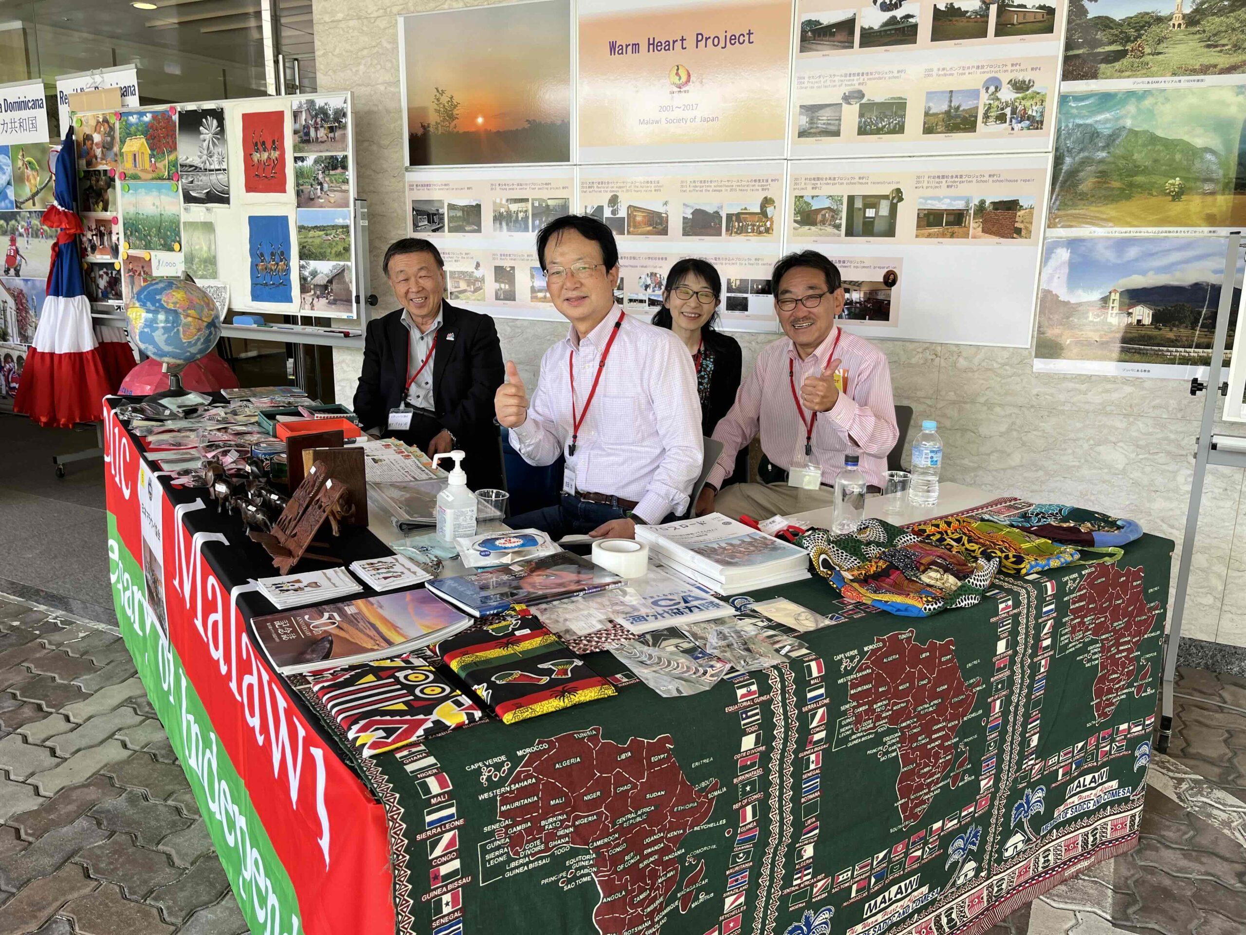 ブースでは日本マラウイ協会の活動報告(機関誌の配布・説明)、マラウイにおけるウォームハートプロジェクトのパネル紹介、マラウイの美しい自然・人々のパネル展示、マラウイの民芸品の展示販売を行います。売り上げはウォームハートプロジェクトに使われます。日本マラウイ協会はOVだけでなく、学生・市民・在日マラウイ人が互いにマラウイを語り、これからのマラウイを考え、日本国とマラウイ共和国が両国の文化交流を通して、良好な関係を築いていくものです。