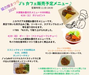 協力隊応援メニューとして1食につき10円をJICA海外協力隊応援基金に募金いたします。